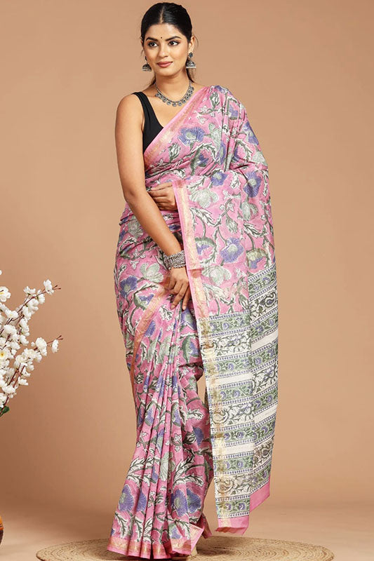 Maheshwari Silk Bagru Print Saree ( BTSJ 194 )